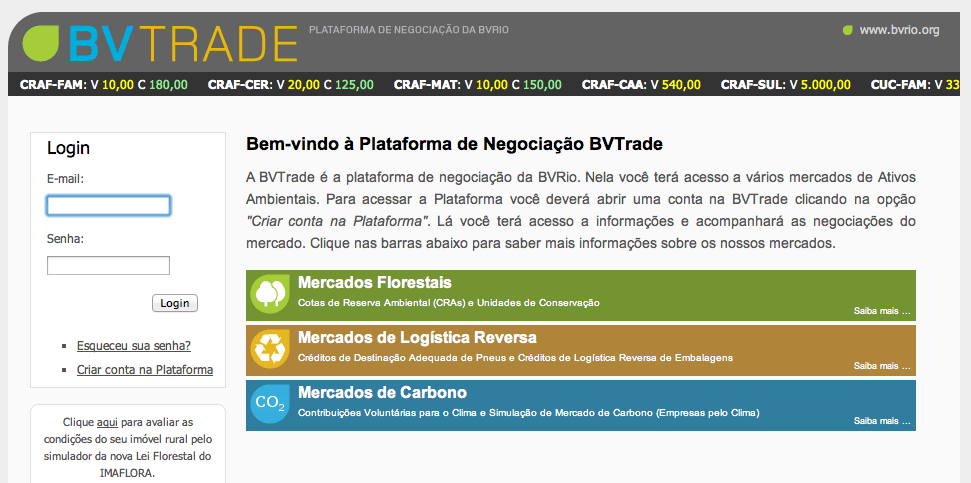 Por meio da plataforma BVTrade, a BVRio apoia o desenvolvimento de mercados ambientais e reciclagem em todo o Brasil. A organização foi vencedora do Katerva Awards 2013, categoria Economia e nomeada Líder em Ação Climática pela R20 – Regions of Climate Action.