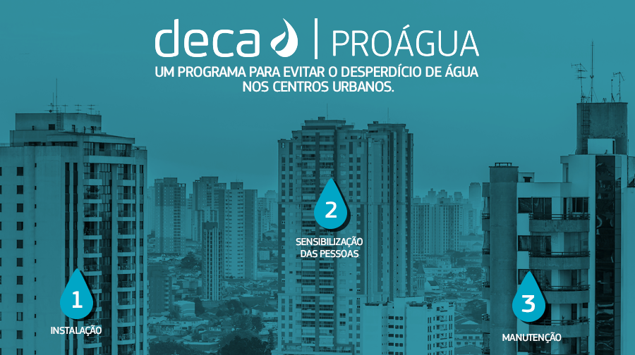 As ações do Deca PROÁGUA são desenvolvidas de forma modular, sempre em função da situação encontrada na edificação por meio de diagnóstico detalhado, e da devida análise dos dados levantados. Esse é um programa contínuo, onde a sensibilização dos usuários, em conjunto com o monitoramento do consumo de água, a instalação de tecnologias economizadoras e a manutenção da edificação, constituem a base para o seu sucesso.